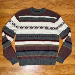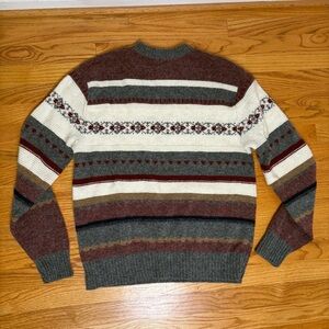 JANTZEN Vintage 90s Wool Blend Fair Isle Nordic Ski Stripe Crewneck Sweater USA