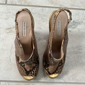 Dries Van Noten Python Snakeskin Sandals Platform Wedge Pumps Peep Toe