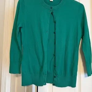 J. Crew The Clare Cardigan Vibrant Green Button-Up 3/4 Sleeves