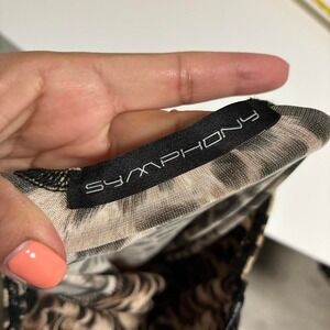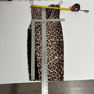 SYMPHONY Leopard Print Strapless Bodycon Sheath Dress Black Trim Mesh Side
