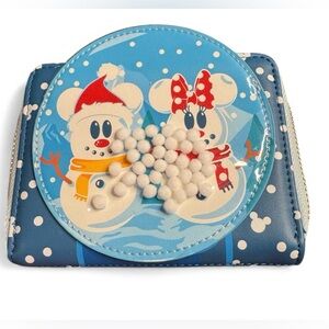 NWT Loungefly Disney Snowman Mickey & Minnie Snow Globe Zip-Around Wallet