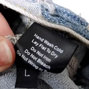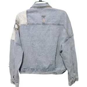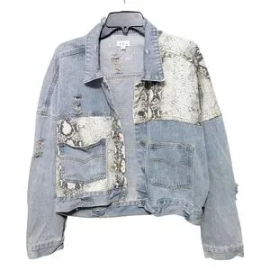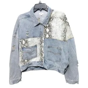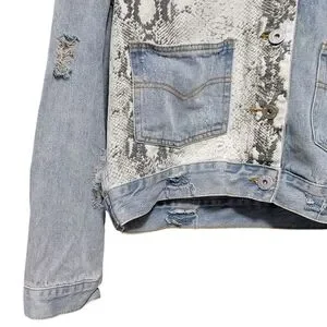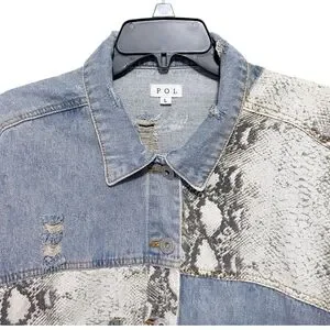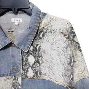 POL Snakeskin Patch Button Up Dustressed Denim Jean Jacket Women's Size Large L