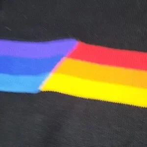 Gently used OP Sweater. Size L. Sorry for all the hair and lent it is a collector. No holes rips tears or stains. Stay stylish and warm with this men's black sweater featuring a vibrant multicolor stripe. Perfect for any casual occasion.