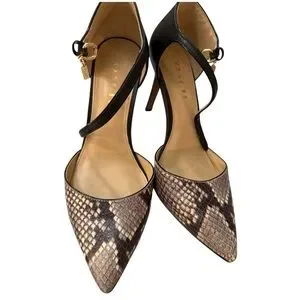 Coach Seline Snakeskin Print Leather Ankle Strap Pumps Size 7B