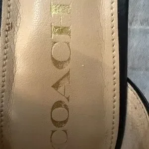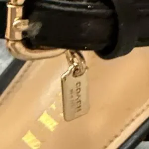 Coach Seline pump, snakeskin leather heel, ankle strap stiletto, d’Orsay pointed toe, black leather pump, women’s dress heel, career or holiday shoe