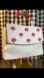 Elegant white satchel with vibrant pink floral details. Features a structured design and top handle.