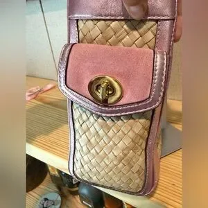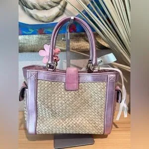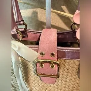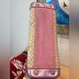 Vintage Coach #4419 straw tote bag with metallic pink leather and suede trim.🎀✨