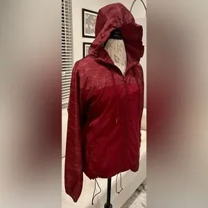 red camo rain jacket, red water resistant jacket, red rain jacket, lightweight dark red jacket