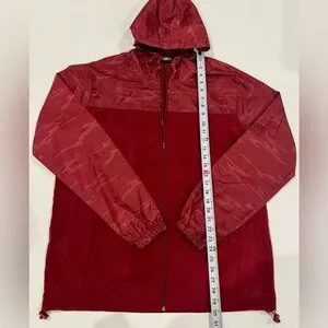 BEAUTIFUL GIANT LA Rain Coat Jacket Deep Red Camouflage Large Drawstring