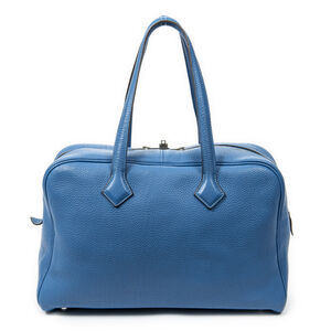 Hermès Shoulder bag Victoria Elan 35 in Blue Paradise Clemence Leather and Palladium hardware. The product is in Excellent Condition (A).
