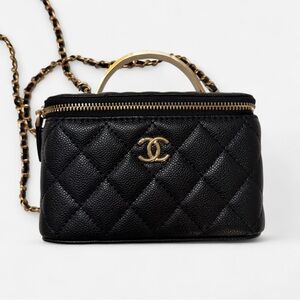 Black Caviar Vanity Bag. Mirror inside. Can be worn cross body or handle. From 💛.