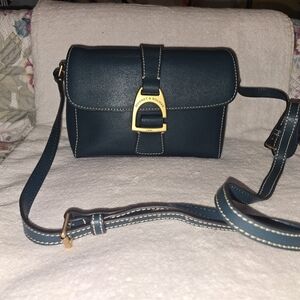 Chic Dooney & Bourke clutch in teal. Features a stylish gold buckle. Perfect for any occasion.