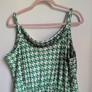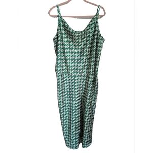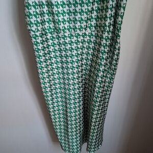 AVA & VIV Green White Geometric Design Feminine Casual Midi Dress Size 1X