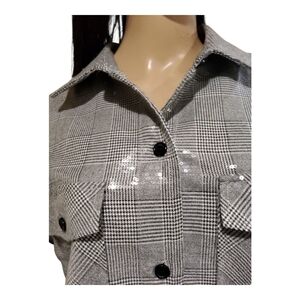 Avec Les Filles, Sequin Plaid Shirt Jacket. Size XL, NWT.