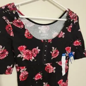 Arizona Blouse For Women Size XS Black Floral Stretch