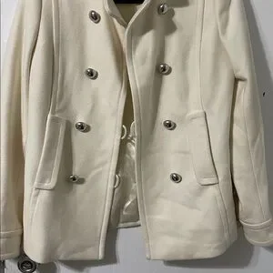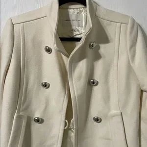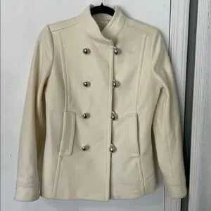 Banana Republic Wool Blend Double Breasted Ivory Button Down Pea Coat Size Small
