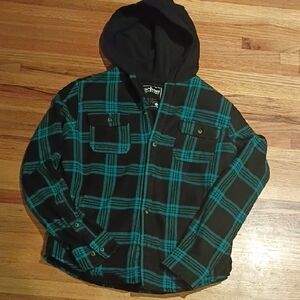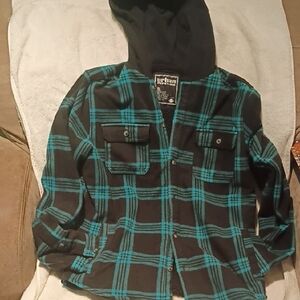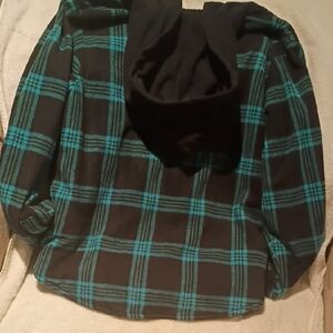 Urban Outfitters Kids Black and Blue Plaid Hoodie