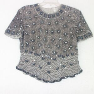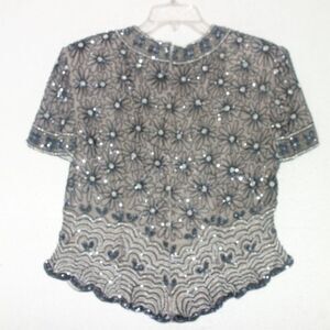 Vintage 100% Silk Papell Boutique Evening Black Silver Beaded Sequin Top MED
