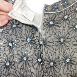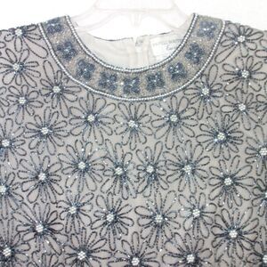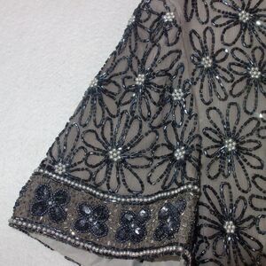Vintage 100% Silk Papell Boutique Evening Black Silver Beaded Sequin Top