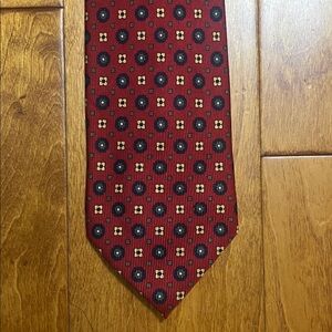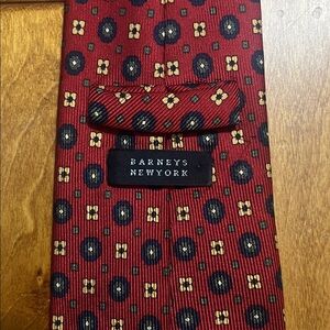Barneys New York 100% Silk Red Geometric Men's Tie Handmade in Italy