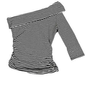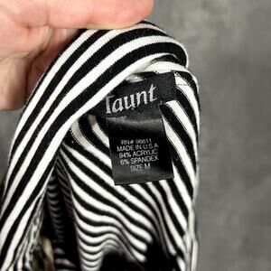 Vintage Y2K off-shoulder top by Taunt — the perfect alt emo vibe. Features black and white stripes, ruched sides, and a stretchy fit that hugs your shape. Made in the USA, soft and comfy for everyday wear or going-out looks. Super cute paired with cargos, mini skirts, or layered under a corset.