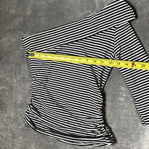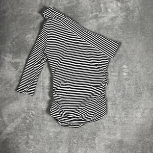 VTG Y2K Taunt Off-Shoulder Top Rouched Black White Striped Women's S Alt Emo USA
