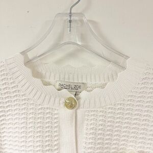 Rachel Zoe White Cardigan Scalloped neckline textured Size XL Gold buttons