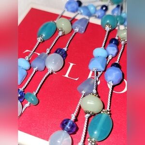 Talbots 3 Strand Blue Aqua Green Glass Silver Ton Statement Necklace Vintage NWT