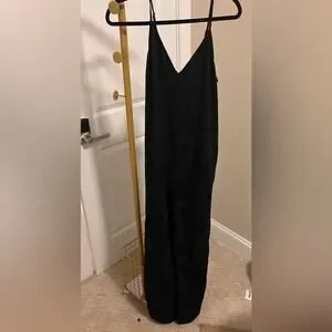 Leith Black Jacquard V-Neck Wide-Leg Jumpsuit – Size Small