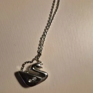 This elegant silver swan necklace adds a touch of sophistication to any outfit. Perfect for any occasion.