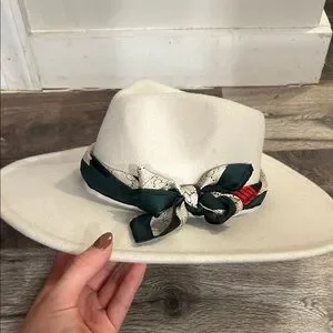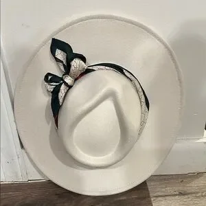 Source Unknown Cream Hat with Patterned Scarf