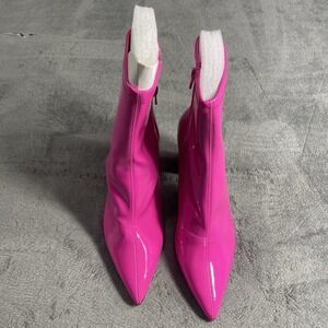 Wild Pair Boots Womens 9.5 Medium Pink Patent Booties Chunky Heel Party Shoes