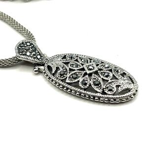 Cookie Lee Silver and Black Filigree Pendant Necklace Snake Chain