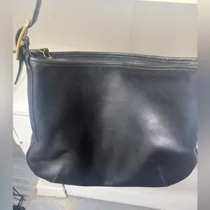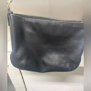 Old Coach Hobo Purse or Saddle Shoulder Bag in black leather. Black/navy blue color. Few scratches and wear pictured. No rips or stains