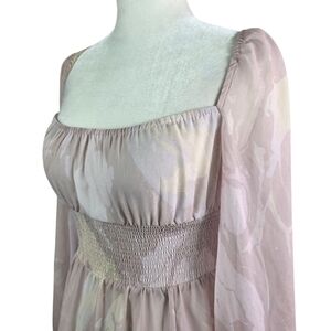 Aritzia Wilfred Bella slit smocked bodice puff sleeves Midi dress