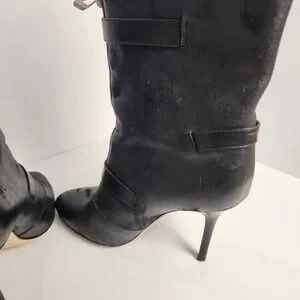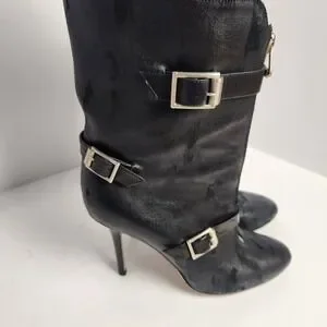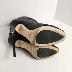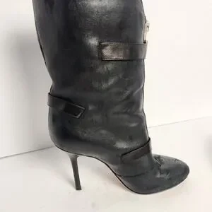 Jimmy Choo Women's Distressed Front Zip Black Leather Boots Size 37.5 (6.5-7)