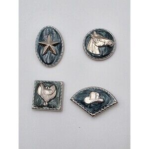 4 Vintage Western Theme Silvertone Green Swirl Button Covers