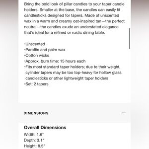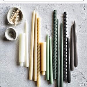CRATE&BARREL NWT 2pc cylinder oat off-white taper candles -8.5”