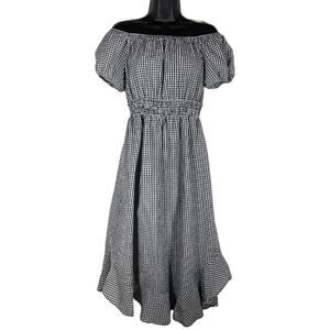 Treasure & Bond Women's Black Gingham Off The Shoulder Dress Size