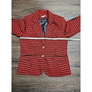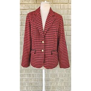 Joan Rivers Women's Size 10 Red & Black Houndstooth Print Blazer Elbow Patches