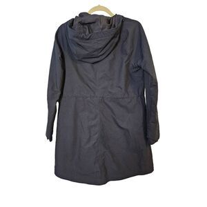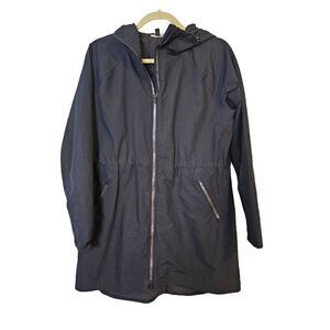 Athleta black spring/fall hooded mid length jacket. Size XS.