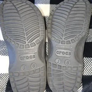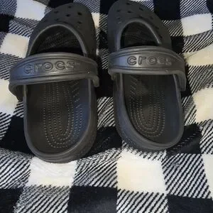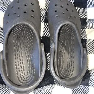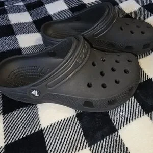 Comfortable black Crocs clogs with ventilation holes and heel strap.
