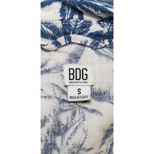 BDG UO 100% Linen Sz S Palm Tree Blue White Cropped Tie Front Button Up Shirt 26