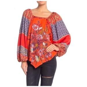 Free People Top Fall XS Blouse Oversized Flowy Cottage Boho Shirt Billowy 70s