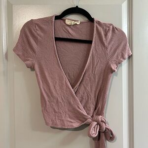 Urban Outfitters Dusty Pink Ribbed Wrap Crop Top