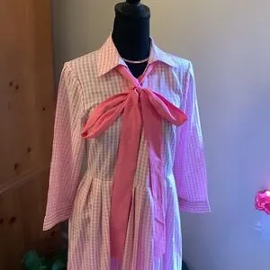 Charming pink & white shirt dress featuring a stylish bow. Perfect for any occasion. Button up - with collar - like new - size small - come came come off