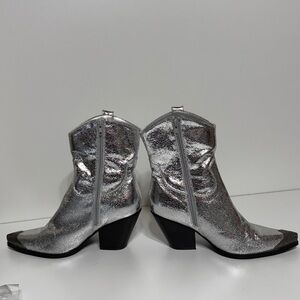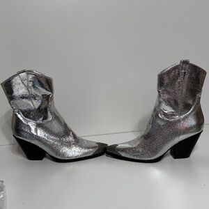 Forever 21 Silver Metallic Distressed Women's Ankle Boots