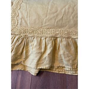 Pottery Barn Green Row Linen Ruffle Crochet Duvet Cover & Shams Full Queen Marigold