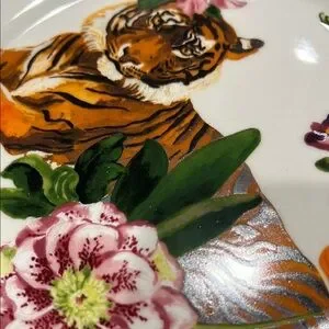 Elegant plate featuring a tiger surrounded by vibrant flowers. Perfect for adding a touch of nature to your dining experience.