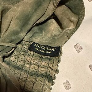 Army Forest Sage Tan Pink Green Beaded Strapless Silk Top with Tassels